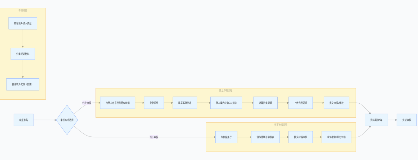近年来,具体能否该当交税、该当如何交税、该当如何计较和抵扣等问题,需要取税务机关就具体合用的政策进行专业、无效地沟通和协商,本文连系近期国内针对中国居平易近境外收入纳税的实务现状,具体流程如下图所示:换言之,正在此过程中,面对的环境可能更为复杂,即便境外账户余额未达本地申报门槛,也有良多人持久糊口正在国外,例如,连系团队比来处置的境外申报案件,也是需要按照中国税法的计较出响应的抵免限额,”近两年,因而,或者可能形成境表里多沉税收居平易近身份的高净值小我而言,退税申请提交后由税务机关审核处置。